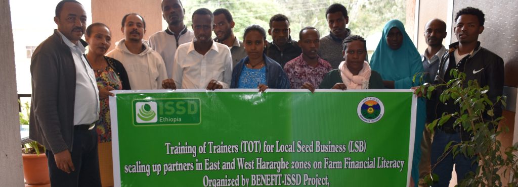 To address this challenge, BENEFIT-ISSD Ethiopia, Oromia East Unit organized a training of trainers (TOT) session about on-farm financial literacy. The participants are cooperative development agents from respective seed producers’ cooperatives (SPCs) as well as scaling-up partners, namely Haramaya and Oda Bultum Universities, Fadis Agricultural Research centre and Chercher Oda Bultum Farmers’ cooperative union.