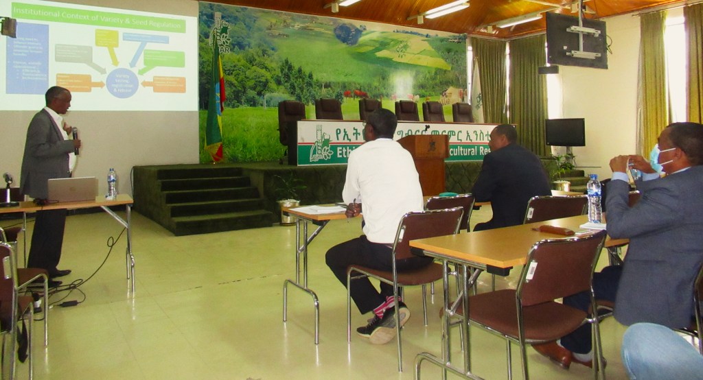 The recently established Ethiopia Agriculture Authority (EAA) is mandated to manage variety testing and other agricultural regulatory activities. The authority will be in charge of carrying out the full variety testing, registration, and release procedure in Ethiopia. To this end, ENSP arranged a consultative workshop to discuss about how to transfer the responsibility for NPT and DUS testing to EAA smoothly. About 24 participants which constitute senior breeders, national crop program coordinators from EIAR, GIZ/SSAP, ICARDA, HLIs and ENSP staff all attended this consultation workshop. The workshop was organized on the 20th of April 2022, the objective was to raise awareness of what has been going on with regard to variety testing and release while also soliciting participants’ input on the next steps with regards to variety testing.