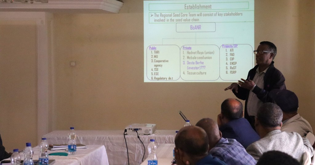 In pursuit of this objective, a workshop was convened on September 21, 2024, in Mekelle town, Tigray Region, with the purpose of re-initiating and strengthening the seed sector coordinating body. The workshop brought together key stakeholders from various organizations relevant to the seed sector, including representatives from the Tigray Bureau of Agriculture and Natural Resource (BoANR), Tigray Agricultural Research Institute, Mekelle University, Seed Enterprises, Reginal Agricultural Transformation Institute (RATI), Relief Society of Tigray (ReST), as well as development partners such as the International Potato Center (CIP), Food and Agricultural Organization of the Unite Nations (FAO), International Committee of the Red Cross (ICRC), and ENSP.
