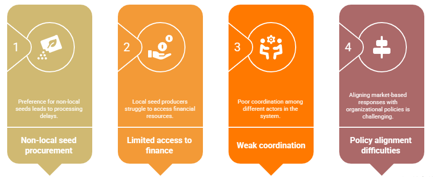 These presentations sparked dialogue among participants. While some humanitarian actors raised concerns about aligning market-based seed responses with their organizational policies, there was widespread recognition of the need to prioritize smallholder farmers’ sustainability and resilience. Participants acknowledged that continued reliance on non-local seed procurement and free seed distribution undermines local markets and long-term recovery efforts.
