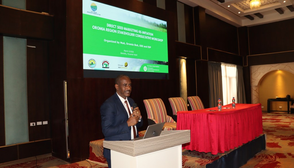 In a concerted effort to enhance seed marketing and ensure the efficient delivery of quality seeds to farmers, the Ministry of Agriculture (MoA), in collaboration with the Oromia Bureau of Agriculture (BoA), Oromia Seed Enterprise, and Ethiopian Seed Partnership (ESP), hosted a regional stakeholders’ consultative workshop in the Oromia Region on 5th of March 2026. This workshop, held as a follow-up of the national stakeholders’ consultative meeting on January 15, 2025, aimed to resume Direct Seed Marketing (DSM) and address challenges within the seed marketing.