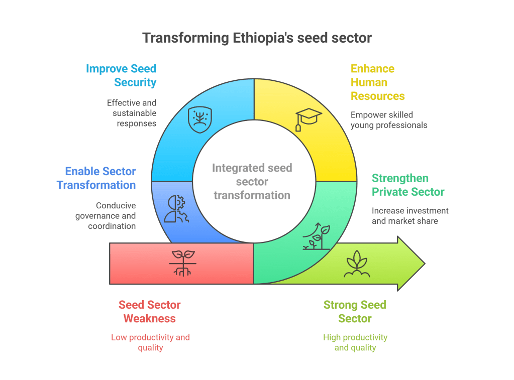 Fourth: Transformation of the seed sector is enabled. Such developments need to be governed in a conducive way, which calls for effective systems and networks of coordination (also among the humanitarian, development, and peace communities); regulatory service provision; and investment in sector-strategic capital.